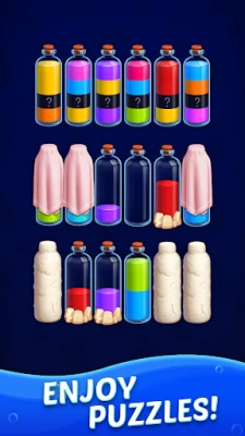 Predstavte si fascinujúci svet, kde je vašou úlohou dokonale usporiadať dúhové tekutiny. V hre Color Water Sort začnete s intuitívnou jednoduchosťou: stačí ťuknúť na fľašu, aby ste ju vybrali, a potom klepnúť na inú, do ktorej chcete vodu preliať. Cieľ je krištáľovo jasný – každá fľaša musí napokon obsahovať len vodu jednej farby, čo vytvára uspokojivý vizuálny efekt a pocit poriadku.