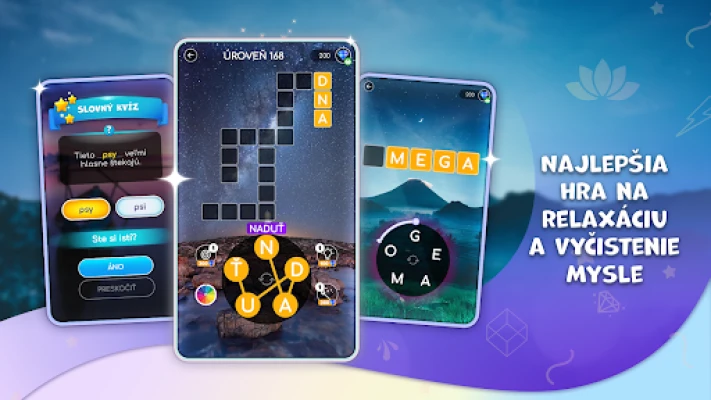 Ponorte sa do sveta pokoja s ukľudňujúcim slovným puzzle. Hrajte návykovú slovnú hru a objavujte najkrajšie miesta Zeme, ktoré vám prinesú relax a zábavu zároveň.